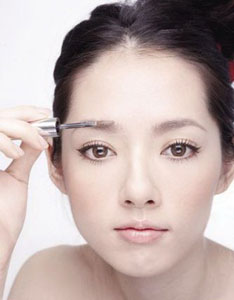 Step8:然后先使用眉笔描绘出略粗的自然眉型,最后再使用染眉膏,以顺→逆→顺,刷过睫毛,均匀的将染眉膏刷在眉毛上。
