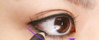 下眼线也是同样的,从外眼角往内侧拉线,最好画的流畅一点,然后用棉花棒使其晕染,晕染眼线效果更自然。